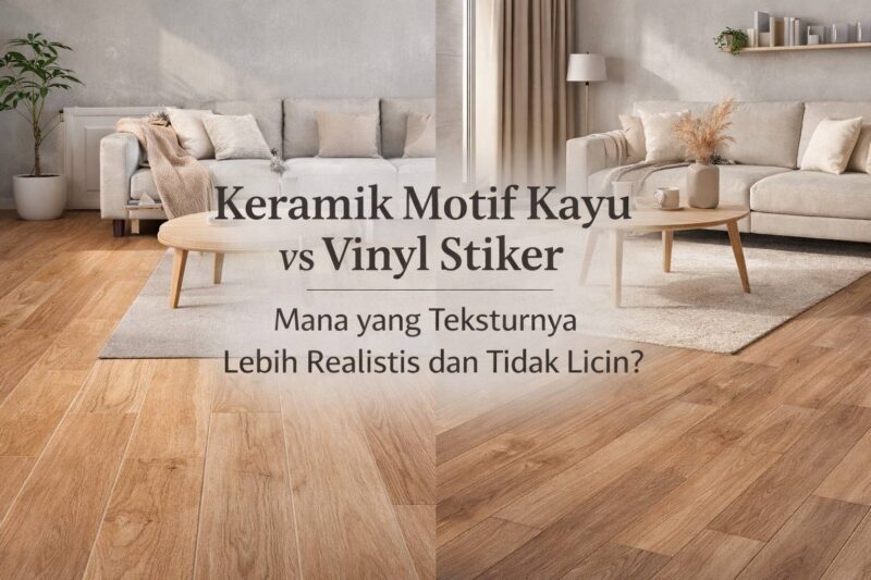 Pernahkah Anda merasakan jantung berdegup kencang saat langkah pertama di pagi hari hampir tergelincir di lantai kamar mandi? Itu tanda pilihan material melupakan satu hal krusial: grip. Memilih lantai ibarat memilih sepatu—tidak cukup cantik di foto, harus nyaman dan aman di kaki. Dua kandidat populer, keramik motif kayu dan vinyl stiker, saling beradu klaim soal keaslian tekstur dan daya cengkeram. Mari kita telusuri lapisan demi lapisan, hingga Anda bisa mendengar bisikan material mana yang paling jujur.