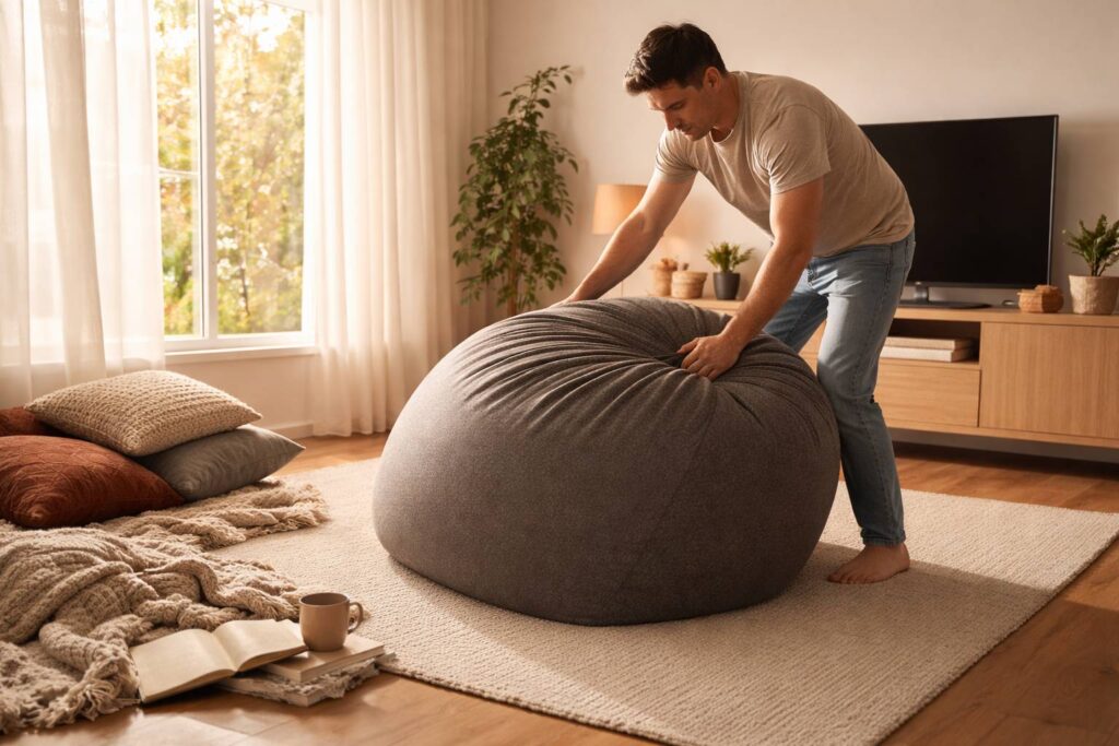 Bayangkan: Sabtu malam, lampu ruang TV sudah redup, popcorn siap, tapi bean bag favorit sudah tidak lagi menyerut badan dengan manja. Dulu ia seperti pelukan empuk, kini lebih mirip bangku malas yang datar. Itu pertanyaan klasik yang bikin ragu sebelum beli: apakah bean bag berisian styrofoam benar-benar cepat kempes dalam enam bulan? Mari kita bahas tanpa filter, berdasarkan pengalaman nyata dan data konkret.