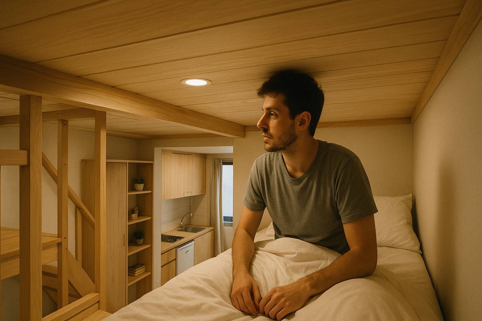 Sisa ruang di bawahnya punya aturan sendiri. Dapur mini atau meja kerja butuh setidaknya 2,1 meter agar tidak terasa seperti gua. Jadi, kalkulasinya sederhana: 1,4 m (atas) + 0,2 m (struktur lantai) + 2,1 m (bawah) = minimal 3,7 meter total tinggi ruang. Dengan plafon 2,4 meter, Anda sudah kehilangan 1,3 meter sebelum memulai.