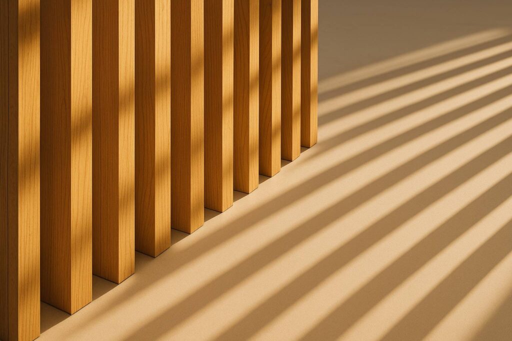 Partisi kayu ideal adalah yang punya celah. Vertical slatted screen dengan jarak 2-3 cm antar bilah adalah sweet spot. Ini cukup lega untuk sirkulasi udara, tapi cukup rapat untuk kasih privasi visual. Tinggi ideal? 180 cm cukup bagi sebagian besar orang berdiri.