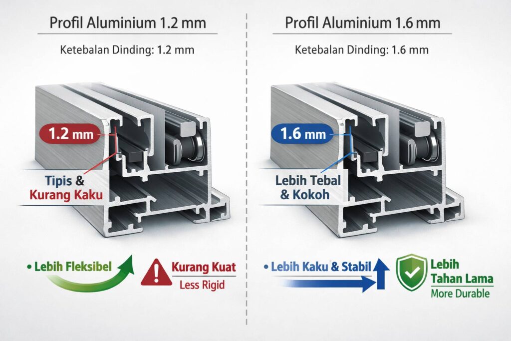 - Tebal Profil: Minimal 1.4 mm untuk kestabilan. Minta sample potongan untuk cek.